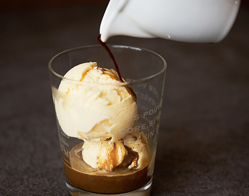 苦味ばしった濃いエスプレッソをバニラアイスに注ぐと、最高のドルチェが完成します