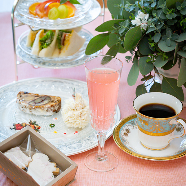 | 内 容 | アフタヌーンティースタンド+メインプレート+シャンメリー+クッキーBOX+ドリンク ◆メインプレート…米粉シュトレン・ホワイトツリー型ケーキ ◆スタンド1段皿…季節のフルーツ ◆スタンド2段皿…山田錦米粉100%絹食パン、無添加ハム、たかたの卵のサンドイッチ ◆シャンメリー…紅玉シロップのマルゴサイダー割り ◆ドリンク…コーヒー・紅茶(カップサービス) ※お好きなドリンクを1つ |